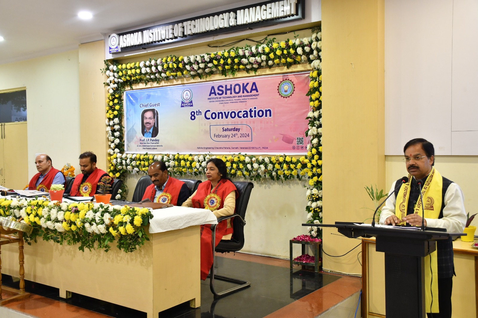 पहड़िया स्थित अशोका इंस्टीट्यूट ऑफ टेक्नोलॉजी एण्ड मैनेजमेंट में आठवें दीक्षांत समारोह में मुख्य अतिथि प्रोफेसर जे0पी0 पाण्डेय, कुलपति डा0 ए0पी0जे0 अब्दुल कलाम प्राविधिक विश्वविद्यालय लखनऊ के साथ संस्थान के संस्थापक ई0 अशोक कुमार मौर्य, चेयरमैन ई0अंकित मौर्य, वाइस चेयरमैन डा0 अमित मौर्य, डायरेक्टर डा0 सारिका श्रीवास्तव, डायरेक्टर फार्मेसी डा0 बृजेश सिंह, प्रिंसिपल अशोका स्कूल ऑफ बिजनेस प्रो0 सीपी मल और प्रोफेसर एस0के0 शर्मा उपस्थित रहे।