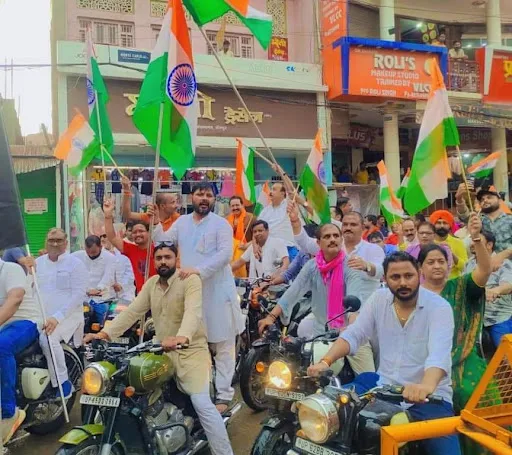 विशाल तिरंगा यात्रा में बीजेपी कार्यकर्ताओं की बड़ी तादाद शामिल रही आम लोगों का भी उत्साह देखते बना व्यापारिक संगठनों के प्रतिनिधियों ने तिरंगा यात्रा में शामिल हुये इन सबका जिलाध्यक्ष पुष्पराज सिंह ने सबका अभिनंदन किया तिरंगा यात्रा के मार्ग पर लोगों ने फूलों की बारिश भी की।
